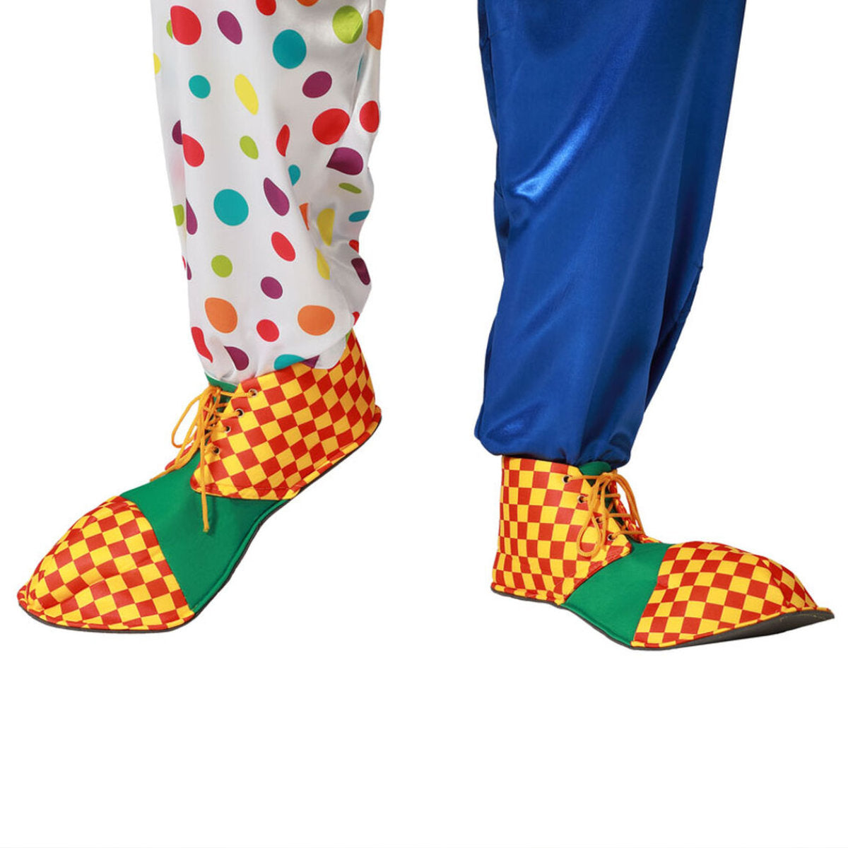 Dessa skor är pricken över i:et för din clownlook, men för att verkligen garantera maximal komik, glöm inte att addera en löjligt stor clownperuk som matchar den lekfulla energin i dina nya rutiga skoöverdrag.