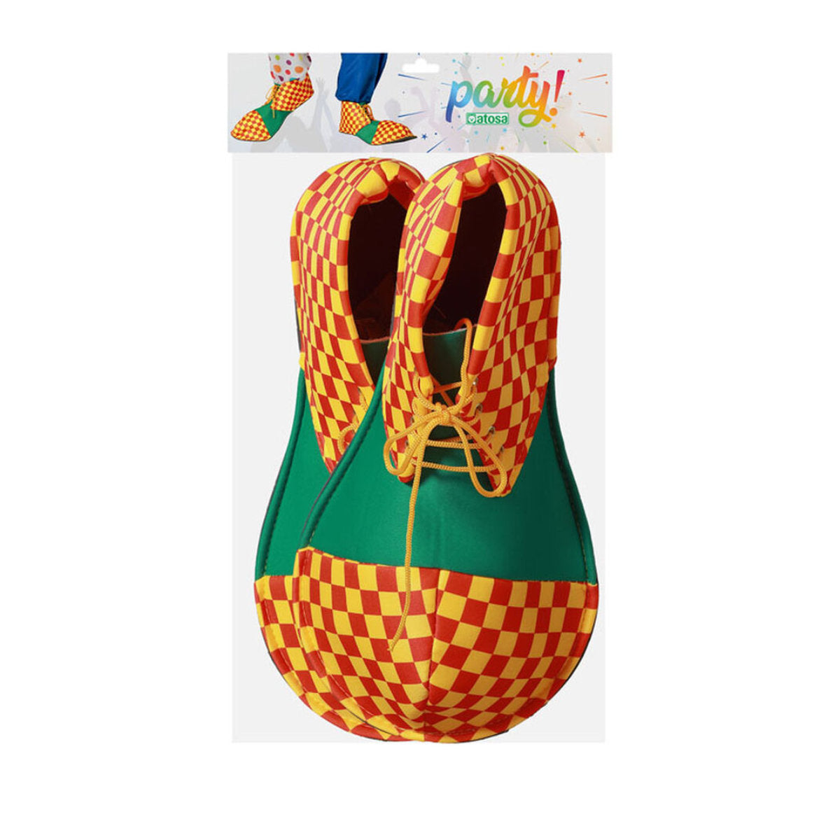 Dessa klassiska, överdimensionerade clownskor har ett härligt rutigt mönster i rött och gult, kombinerat med en glad, grön färg. De fungerar som skoöverdrag som du enkelt trär över dina vanliga skor, vilket gör dem både bekväma och effektfulla. Perfekta för att fullända din look till barnkalaset, maskeraden eller Halloween. Nu är du redo att stjäla showen!